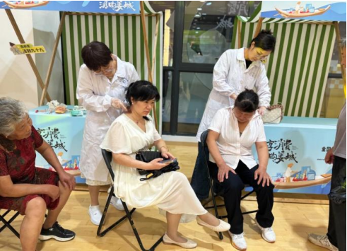 其中,适宜技术体验区设置的艾灸、穴位贴敷、耳针、推拿等中医理疗项目,吸引了不少市民前来体验。家住梁徐街道的陈女士接受针灸治疗后开心地说,这几天,肩膀一直疼得很厉害,针灸治疗后效果很明显。秋季药膳、养生茶饮也吸引了众多市民前来品尝,医康养科专家详细讲解药食同源以食为养的科普知识,将中医养生融入市民日常生活。