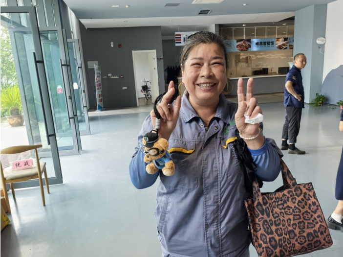 趣味套圈乐不停,收好用网“随身签”。套圈游戏区前始终排着长队,欢声笑语此起彼伏,成为整场活动的“人气焦点”。不少人拿着刚从答题区换来的套圈,跃跃欲试地等待上场。“看我的!”随着一声轻喝,一名员工瞄准目标,手腕轻扬,塑料圈在空中划出一道弧线,稳稳套中最前排的玩偶,周围立刻响起一阵喝彩声。拿到玩偶的他笑得格外开心,“没想到答题赢的套圈真能中,这礼物太有纪念意义了!”热闹的氛围感染了路过的就餐者,不少人见状主动参与答题,即便未能套中,工作人员也会送上1张网络安全主题书签作为鼓励。