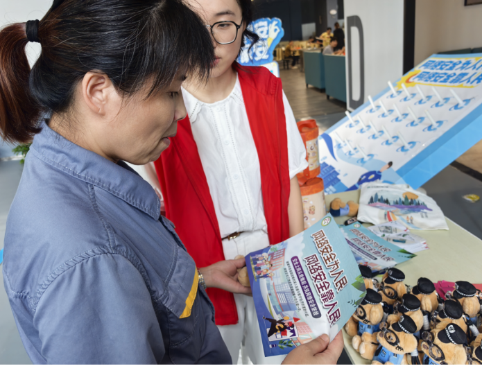 宣传手册递到手,网络安全“可视化”。现场工作人员通过发放宣传手册、案例讲解等形式,向过往员工普及网络安全知识。贴心为来往员工准备了网络安全“小锦囊”,内容包含“安全案例+防护口诀+法律条文”等内容,既拆解了办公设备防护、钓鱼邮件识别等多类高频安全风险,又标注了网络安全法、数据安全法的相关条款节选,搭配“不点陌生链接,不泄工作数据,守法用网护权益”等醒目标语,让专业知识与法治理念通俗易懂。“这手册上的一些案例跟我们遇到的情况很像,还有法律依据标注,放工位上既能提醒自己,又能随时翻着学法规。”刚领取到的百奥员工边翻看边说道。