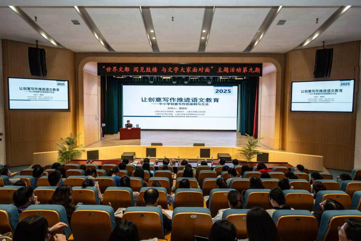 9月19日下午,“世界文都 阅见鼓楼——与文学大家面对面”主题活动第九期在鼓楼区教师发展中心圆满落幕。第五届鲁迅文学奖得主、上海大学文学院教授谭旭东携新作《儿童诗教二十讲》,以“中小学创意写作的原则和方法”为题,与四百多名中小学教师及读者深入交流,为“书香鼓楼”注入诗教新韵。