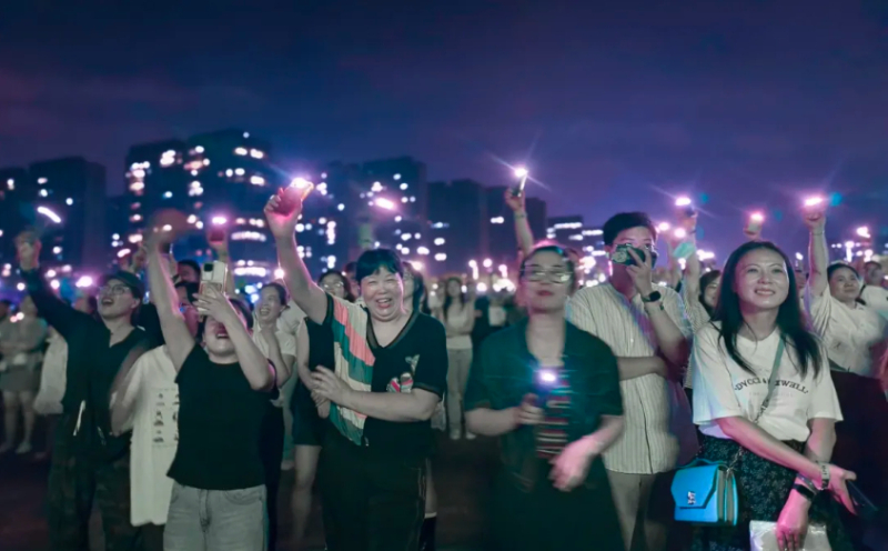 观众们挥舞手机灯光,合唱熟悉的旋律,在音乐与湖光的映衬下,度过了一个难忘的秋日夜晚。