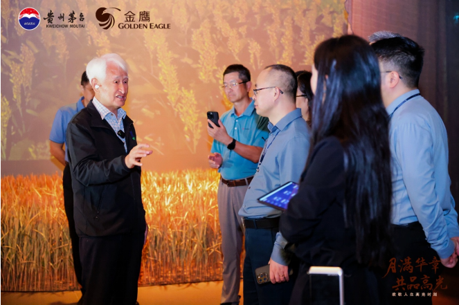 中秋月圆,酒香情浓。9月26日,由金鹰国际集团与贵州茅台集团联合举办的“月满华章·共品高光——致敬人生高光时刻”主题品鉴会在南京金鹰世界G酒店50层天际厅及茅台文化体验馆圆满举办。茅台集团领导、经销商代表、核心客户及各界嘉宾等近百人齐聚一堂,共赏明月、共品美酒、共话文化,共同参与这场融合非遗、艺术与科技的沉浸式中秋盛宴。