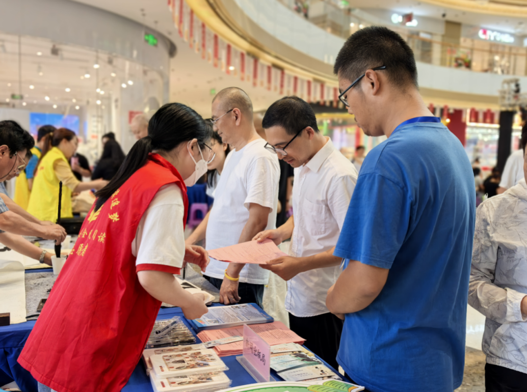 启动仪式外,由22家单位共同组成的社科集市同样热闹非凡。红木雕刻、绳编、空竹等如东非遗展示吸引了不少市民驻足体验,书法家现场挥墨送祝福、县红十字会志愿者进行家庭救护演示、专家医生现场义诊,此外,围绕当前百姓关注的热点问题,还组织了相关志愿者开展服务咨询活动。