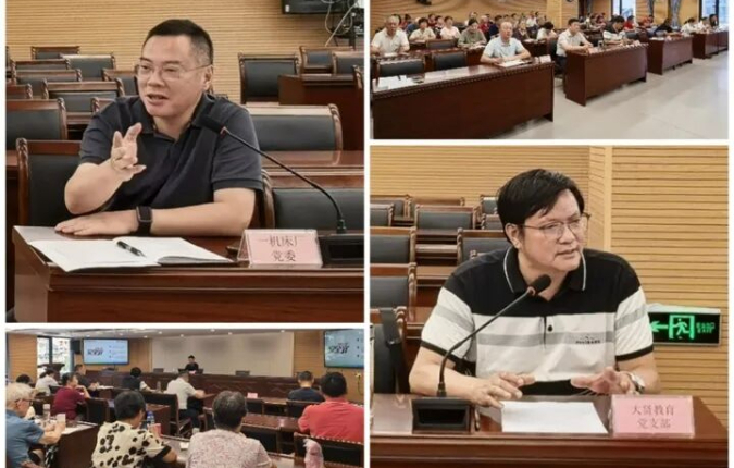 南京第一机床厂有限公司党委书记高志远(左上)、江苏大贤教育科技集团股份有限公司党支部书记曹峰峻(右下)在研讨会上先后发言