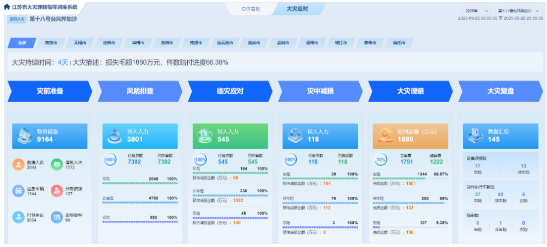 大灾平台整合接入6605台水淹预警设备,对超过警戒值的118个风险点实现精准响应。“桦加沙”侵袭期间,江苏人保财险利用平台进行智慧统筹,靶向调配救援人员545人,投放救助物资9164件,确保救援力量“投得准、联得通”。