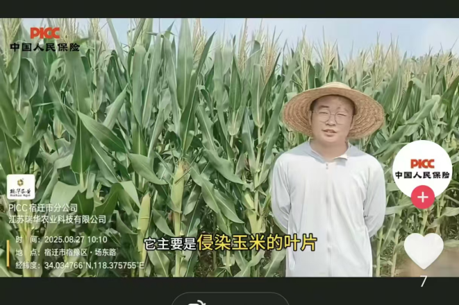 “玉米锈病要预防,科学用药是关键……”这段来自《夏季高温玉米锈病防治要点》抖音短视频的声音,已在宿迁地区种植户的朋友圈里广泛传播。人保财险宿迁市分公司联合宿迁种子公司、农艺师共同打造的系列科普视频,将专业的防治知识转化为通俗易懂的语言,视频播放量已达30万次,让广大农户足不出户就能学到最新防治技术。
