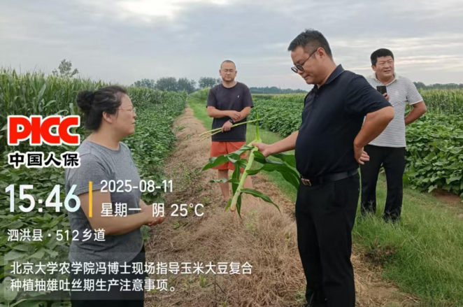 在玉米生长的关键期,人保财险宿迁市分公司邀请的农技专家们穿梭在田间地头,为农户提供面对面的指导服务。
