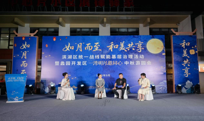 为充分发挥统一战线的独特优势、社会工作的专业优势,将资源、人才、智慧力量注入基层治理的“神经末梢”,9月28日晚,“如‘月’而至 和美共享”滨湖区统一战线赋能基层治理暨蠡园开发区“一湾明月邀同心”中秋游园会在蠡园街道西园社区“蠡想家YUAN”广场举行。