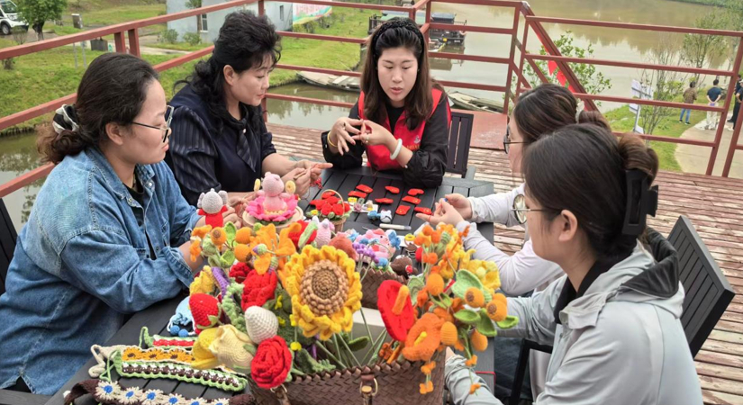经纬交织,一线一传承。手工编织达人郑艳梅带领大家,一同捻起五彩丝线。指尖翻飞,经纬交错,共同编织出满载祝福的挂饰与摆件。丝线穿梭之间,传统技艺的脉络清晰浮现——郑艳梅细致讲解着编织要领,志愿者们专注跟学,在默契的配合中将每一件作品完成得一丝不苟。一针一线,凝聚着团队的专注与协作;经来纬往,延续着古老手艺的技法与精髓。郑艳梅与大家以双手共同编织的,不仅是精美的工艺品,更是对家乡文化未来的坚实传承。