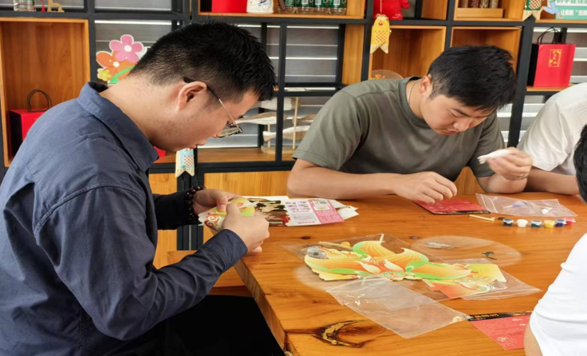 鱼灯映水,一灯一华章。在鲍老湖同心之家,活动现场的志愿者不仅展示了寓意“五谷丰登,安居乐业”的成品鱼灯,更将制作技艺倾囊相授——从扎制竹篾骨架,到裱糊彩纸、绘制纹样,再到点缀灵动流苏。参与者们兴致盎然,或细心裁剪,或巧手粘贴,或专注描画,在融洽的协作中,一盏盏鲜活的鱼灯跃然手上。当光芒在灯中亮起,闪烁的不仅是水乡人民对幸福生活的向往,更有亲手唤醒非遗所带来的认同与自豪。