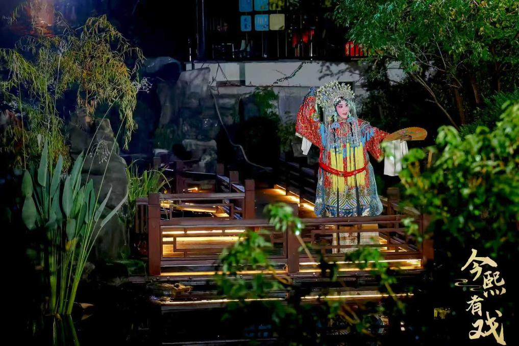 沉浸式夜游《今熙有戏》由南京市演艺集团、甘家大院和熙南里街区联合策划打造,南京市京剧团演出。从回廊小亭到假山曲桥,从津逮藏书楼再到茶馆戏台,延续百年历史的甘家大院处处是舞台、幕幕皆美景。演出以“南家班”纳新寻角的剧情主线带领游客一秒入戏,跟着武生耍一回枪花,伴着“游园”学一段水袖,在月色中听一折《贵妃醉酒》,再装扮登台当一回“角儿”……“角色扮演+剧情闯关+沉浸互动”的创新模式打破了传统观演的边界,让游客从“旁观者”转变为“参与者”甚至“共创者”,一场游园有趣有玩有收获,成就南京夜游打卡的又一爆款场景。