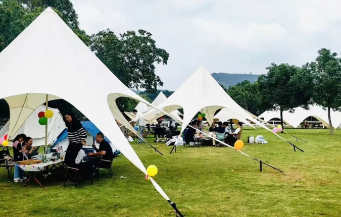 “露营+温泉”成为新风尚。在大吉温泉度假村,首届温泉主题帐篷音乐活动来袭,依托新升级的温泉池与12000平方米草坪,打造温泉嘉年华,白天在草坪间露营玩趣,夜晚枕漫天星空沉浸式泡汤,温泉与露营的双重惬意在浦口解锁。