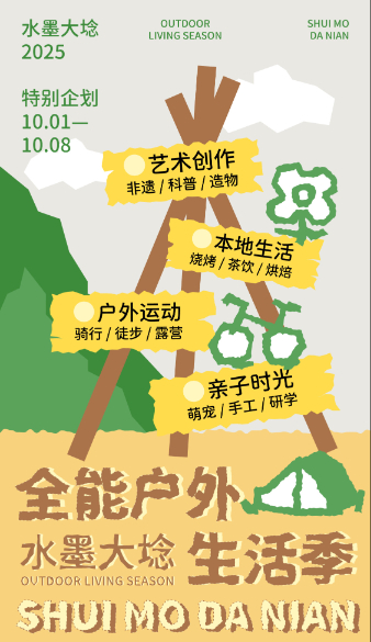 国庆期间,水墨大埝旅游区上新山野的朋友营地、金陵漫花庄园和大埝动物村等新业态,启动“悦动·江山骑迹——户外生活嘉年华”主题活动,动物互动、竞技挑战、自然疗愈等多个体验区,打造近郊户外度假新范式,邀请广大市民游客潜入山野舒适区,来一场沉浸式山野体验。