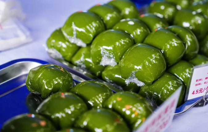 仪式结束后,熙乐汇沿线的20余个美食展示摊位成为“打卡热点”。盐水鸭的醇厚、糕团的香甜、土菜的鲜香……各色南湖特色美食齐聚,吸引居民们驻足品尝、热闹选购。