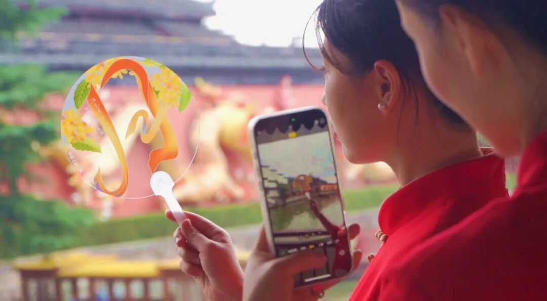 在夫子庙大成殿前、文德桥畔、科举博物馆明远楼前秦淮的“最美赏月地”,随处可见手持团扇拍照的游客。有人将团扇举至桥头,让扇面透卡与真实月色重叠,拍出“诗画合一”的意境;有亲子家庭带着孩子寻找扇面上诗句对应的景点,边打卡边讲解诗词;还有年轻游客创意搭配汉服,用团扇作道具拍摄古风短视频。“这个扇子不仅好看,还能让孩子了解诗词,很有意义!”带着6岁儿子打卡的李先生说,他们已集齐3个打卡点照片,正准备发微博。