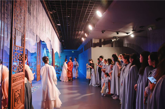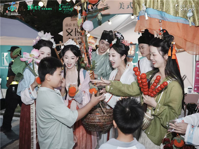 当天,长江路沿线的文博场馆作为分会场,联动推出了“织梦千年”主题系列活动,打造一场可触可感的文化之旅。江宁织造博物馆延时开放至晚上9点,推出“红楼梦里的365天营养康健饮食”展览及特色研学活动,展示《红楼梦》里舌尖上的中国,传递文学经典里的饮食力量;在江宁织造博物馆外,“银杏树下”《红楼梦》推广活动带领大家沉浸式体验古都秋韵和红楼雅趣的交融;“大梦·红楼”沉浸式体验馆开放夜间专场,市民游客穿一袭汉服,梳一个古髻,以第一视角沉浸探索红楼世界;近期开业亮相的万事利丝绸艺术馆,还组织了一系列赠送文创小礼品、抽奖等促销活动,展现丝绸文化的千年魅力。