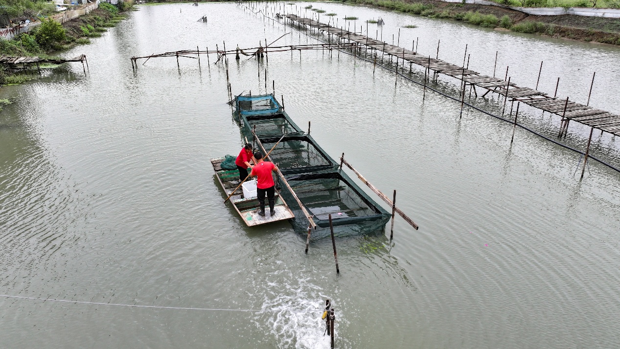 “你们看这水质,没有任何污染,水源都是来自二河,这就是我们能够养出高品质大闸蟹的关键所在。”踏上塘中小船,杨东成随手舀了一桶水展示。为保证螃蟹质量,基地采用了生态养殖的方式,注重投喂玉米、地瓜等自配饲料,后期不惜成本投喂鲜鱼鲜虾,既保证了甜度又保证了肥度。