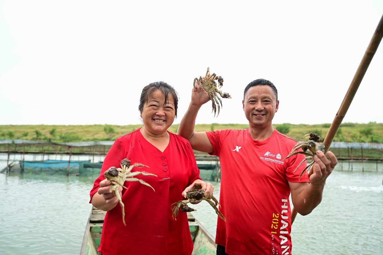 好水出好蟹,依托二河毗邻洪泽湖的地理优势和丰富的水域生态资源,螃蟹等水产养殖已成为该区域养殖业的“金字招牌”。每年螃蟹上市时节,基地个大爪长、蟹黄嫩滑的螃蟹总会吸引着源源不断的各地水产商来进货,还有不少本地商户都成了基地的“熟客”了。
