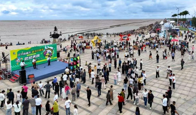 2025年中秋国庆双节叠加,盐城滨海以“潮玩滨城・嗨购金秋”为主题,牵起“文旅+”主线,精心打造“1+10+N”特色促消费系列活动。从景区里的狂欢盛宴到商场里的促销热潮,从夜幕下的烟火集市到直播间里的农产热销,全域消费场景火力全开,各类消费数据节节攀升,勾勒出一幅“人气旺、消费火、烟火浓”的假日民生画卷。