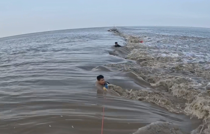 “潮水涨得特别急,速度比预想中快很多,两人被困的位置离岸边越来越远。”事后王浪回忆,当时看到两人在水中慌乱的样子,心里只有一个念头:“得赶紧把人拉上来。”