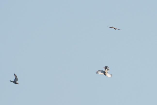 尽管当日薄雾笼罩,多个观测点能见度不佳,镇江志愿者们的热情却丝毫不减。上午10时33分,南山观测点率先记录到林雕身影;11时57分,十里长山再添一笔观测记录;12时19分,南山观测点惊喜迎来第二只林雕!除林雕外,黑鸢、凤头鹰、松雀鹰等常见猛禽陆续现身,南山风景区更记录到罕见的鹊鹞(成年雄鸟),成为当日监测的“意外之喜”。