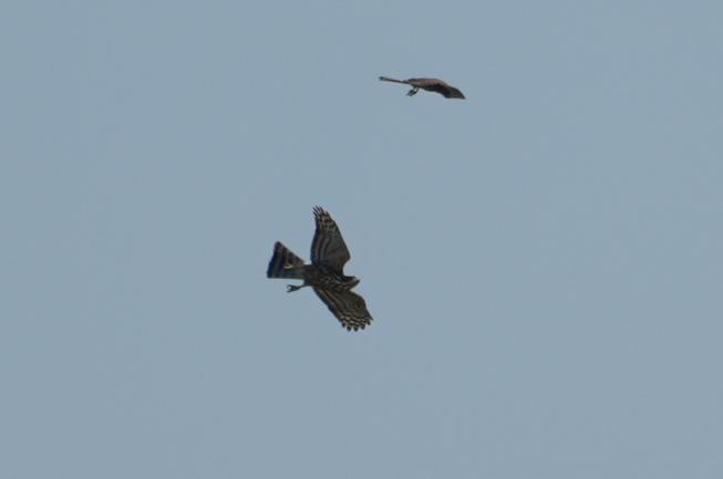 自监测行动启动以来,志愿者已在句容九龙山、京口区横山、经开区圌山等7个点位建立观测网络,累计记录鹰形目猛禽11种、隼形目3种,多项观测刷新年度纪录:京口区横山首次用镜头捕捉到2只蛇雕,丹阳水晶山观测到五种鹰类“空中缠斗”的奇观且记录下了本年度的第一只红脚隼,丹徒十里长山有凤头蜂鹰翩然现身,南山国家森林公园记录到鹊鹞……除猛禽外,本次监测还记录到秋季迁徙鸟种白喉针尾雨燕。