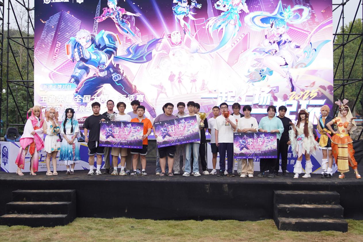 作为活动核心环节,王者荣耀全国大赛南京珍珠泉站吸引了全国100支战队报名参赛,其中不乏来自浙江、安徽、湖南、湖北、河南、河北等外地来宁选手及省内城市战队,既有来自东南大学、南京师范大学、南京邮电大学等高校的战队,也有像汽车电子工程师郭先生与设计师妻子刘女士组成的“夫妻档”等非职业玩家组合。这些多元参赛群体在珍珠泉的山水间展开激烈角逐,最终来自中国矿业大学的“不论闹与麻”战队摘得桂冠,不仅赢取万元奖金,更获得第十三届省赛晋级资格。
