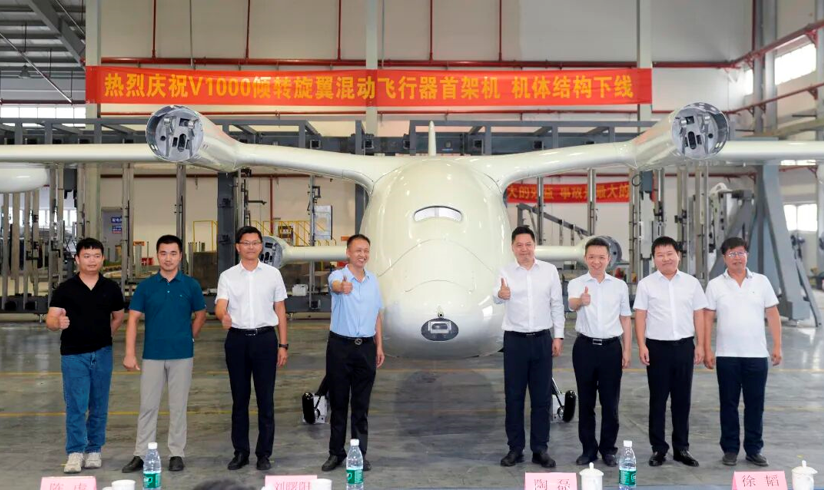 10月11日中午,V1000倾转旋翼混动飞行器首架机机体结构下线仪式在南京聚隆复合材料技术有限公司厂房内举行。江北新区党工委委员、管委会副主任陶磊,江北新区智能制造办主任徐韬,南京聚隆科技股份有限公司董事长刘曙阳、南京聚隆复材公司总经理王明军以及合作方、供应商、南京聚隆集团核心团队成员齐聚活动现场,共同见证这一低空经济领域的重要时刻。