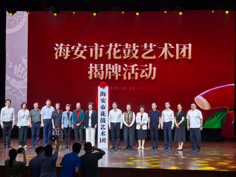 10月12日下午,海安市文化艺术中心小剧场里,南通市委常委、宣传部部长陈冬梅和海安市委书记谭真一起为“海安市花鼓艺术团”揭牌。