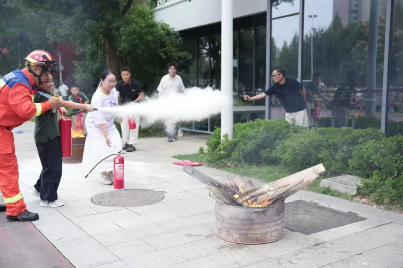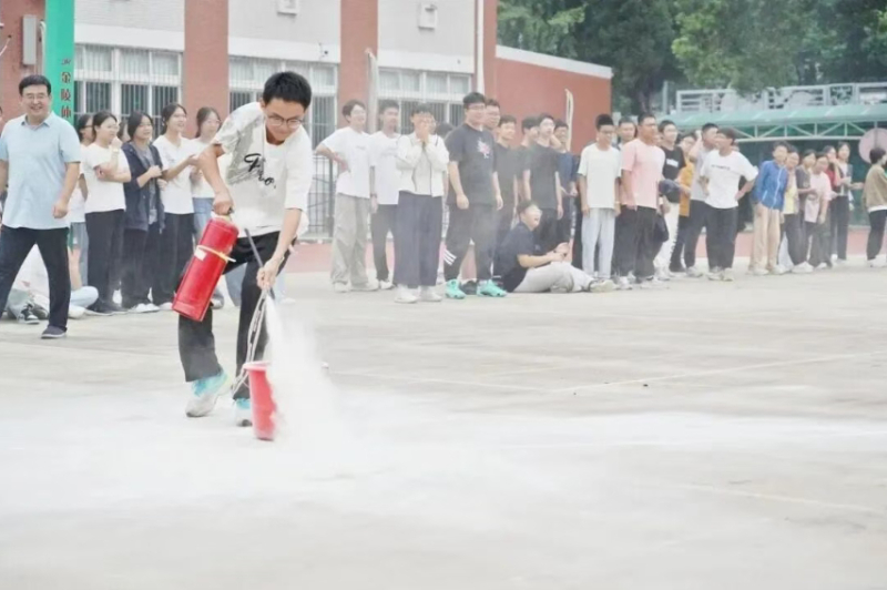 无锡市第六高级中学槐古校区以“趣味+实战”相结合形式开展消防演练。警报声响,同学们第一时间关电源,弯腰沿壁快速有序撤离到安全区域。灭火接力赛中,同学们以“一提、二拔、三握、四压”的标准动作,对模拟火源进行扑救。
