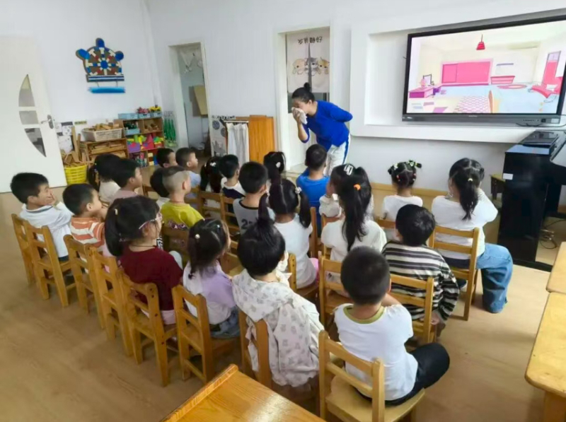 南京市秣陵中心幼儿园聚焦“防灾减灾+日常安全”,各班开主题班会:用卡通道具模拟“红绿灯过马路”教交通安全,通过触摸灭火器模型讲消防知识,结合生活场景提醒用电用火用气注意事项,以“可视化+互动化”让安全知识入脑入心。