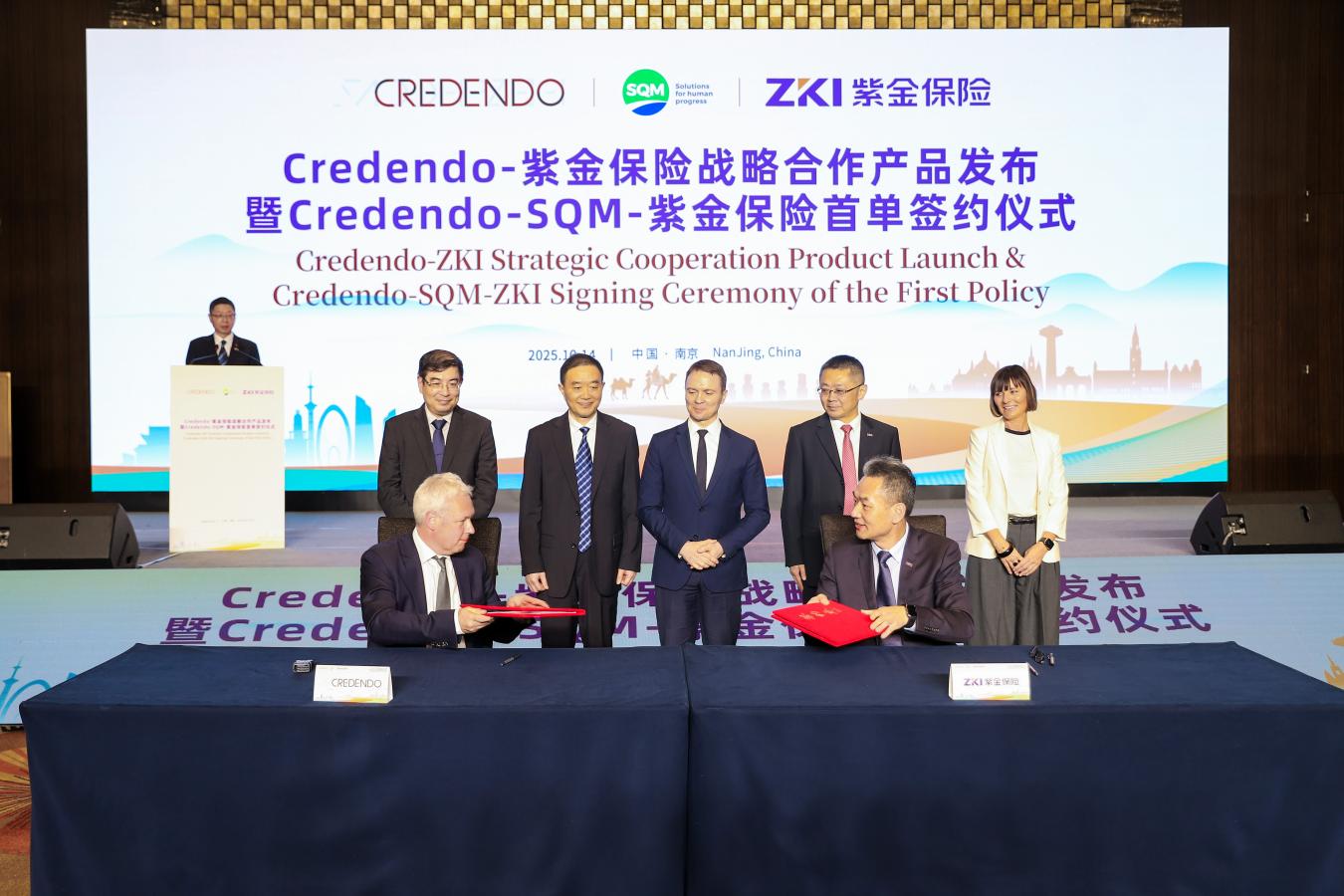 10月14日下午,比利时Credendo信用保险集团、智利SQM集团与紫金保险齐聚南京,举行“Credendo-紫金保险战略合作产品发布暨Credendo-SQM-紫金保险首单签约仪式”。