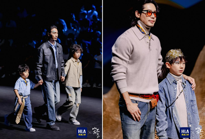 此次新品发布的动人一幕,是由多位父子共同呈现的温情同台。父子嘉宾与模特们身着海澜之家「山不在高」系列服饰,在T台上以自然真挚的互动,将“父爱如山”的厚重主题化作可感可触的时尚叙事。童装设计的活泼灵动与成人男装的沉稳包容相得益彰,父子并肩而行,步伐间流露的默契与温情,让整场大秀的情感层次更为丰富。这一创新编排,不仅深化了「山不在高」系列的人文内涵,更以细腻笔触映现出父爱的宽广与深厚。