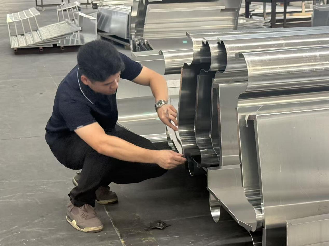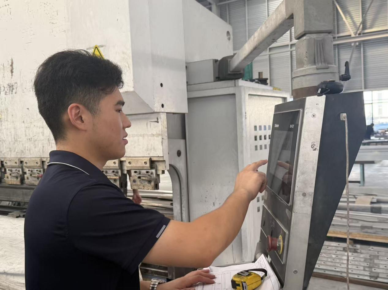 “如果说裁剪、冲孔是‘做衣服’,那折弯就是‘立骨架’,是定形定魂的关键一步!”郑杰用通俗的语言解释着数控折弯的重要性。他深知,折弯角度差0.5mm、与模具不匹配,都会影响幕墙的美观与安全。在他看来,折弯不仅决定着铝板的形状精度、结构强度,更直接关系到安装适配性,“前面工序做得再好,折弯出了问题,一切都白费。”