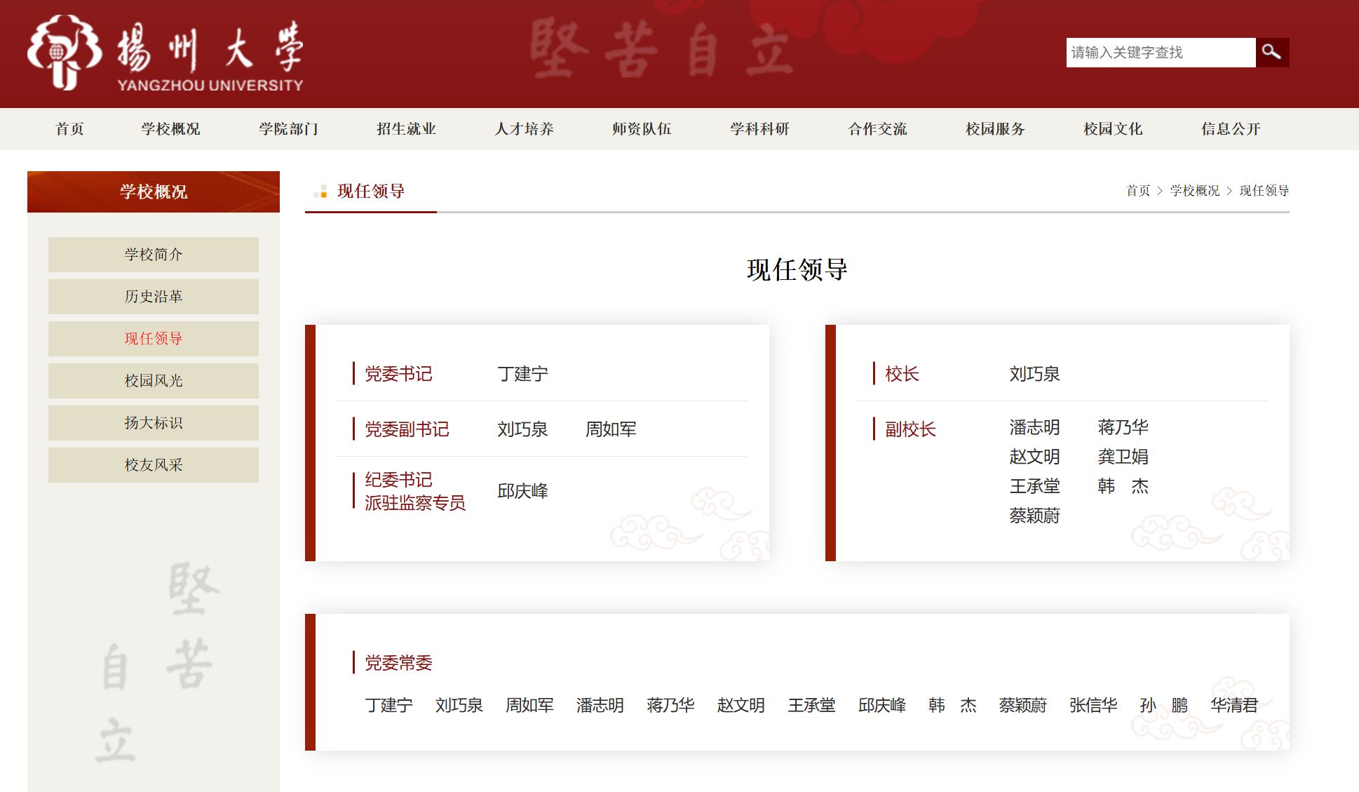 近日,扬州大学官网“现任领导”一栏更新后显示,潘志明已任扬州大学党委常委、副校长,此前他为宿迁学院党委副书记、校长。