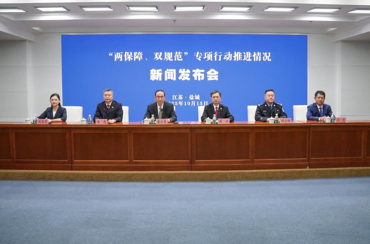 10月15日,盐城市召开“两保障、双规范”专项行动推进情况新闻发布会,总结“两保障、双规范”专项行动进展情况,发布全市“两保障、双规范”专项行动暨优化法治化营商环境典型案例。盐城市委政法委副书记戴红春,市中级人民法院党组副书记、副院长周宏,市人民检察院副检察长朱进,市公安局副局长杨云峰,市司法局副局长许亮等出席新闻发布会。