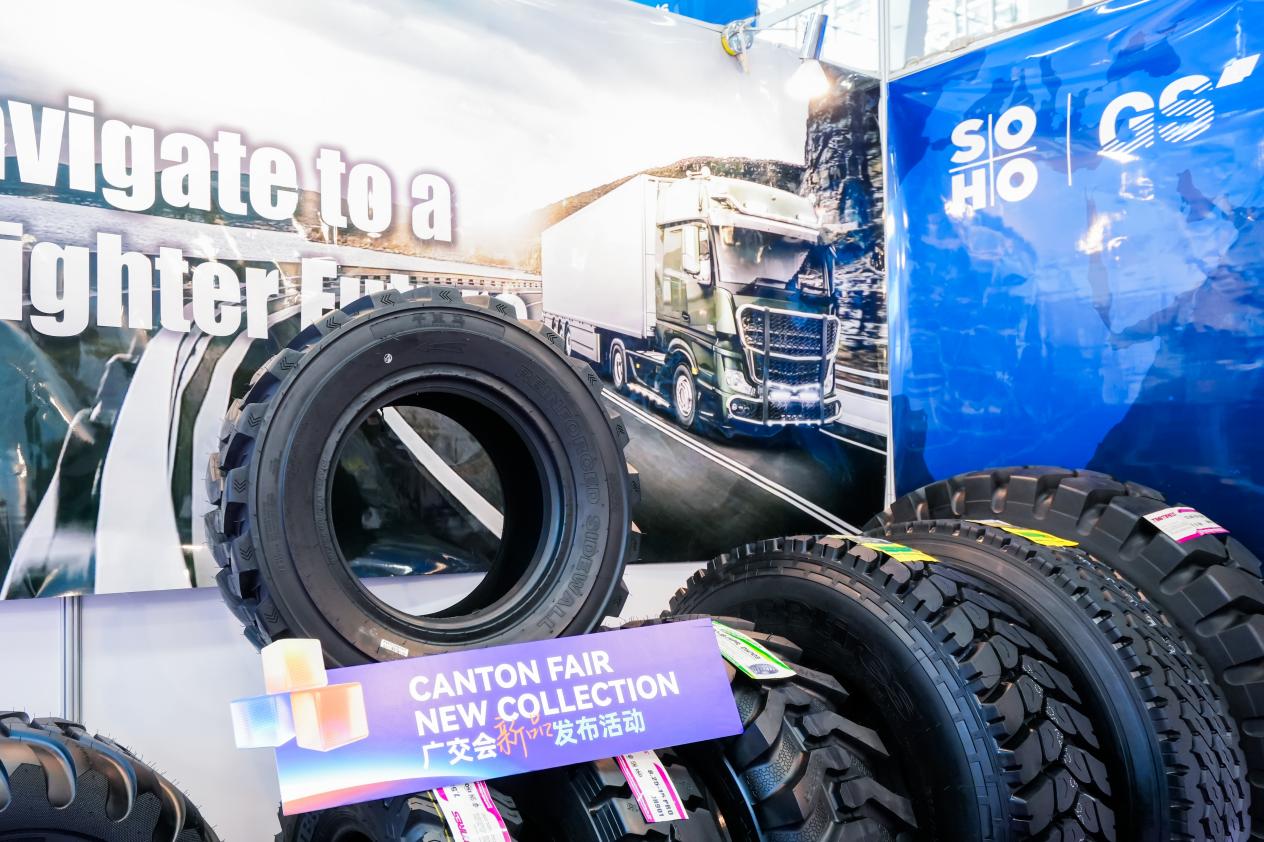 通用股份推出的“开放式胎肩”,其冠部及圈部采用特殊结构设计,单胎承载在180%以内。同时,采用方向性块花设计,拥有良好的抓地性及排水排泥功能,能较好满足中短途混合路况使用时的高性能需求。大块花纹设计还能提高其抗切割性能,叠加肩部采用的开放性沟槽设计,可大幅提升散热功效。