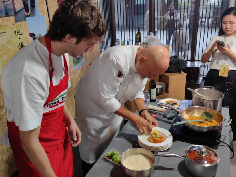 在“请陵嗨吃”——中意美食市集上,由中意商会邀请的十余家意大利知名食品企业齐聚一堂,带来了地道的披萨、烘焙甜品、醇香红酒、特色意面等经典意大利美食。现场人气最旺的当属意大利米其林三星名厨带来的意面制作快闪表演,精湛的厨艺令观众赞叹不已,“零距离”感受了顶级意式烹饪的魅力。