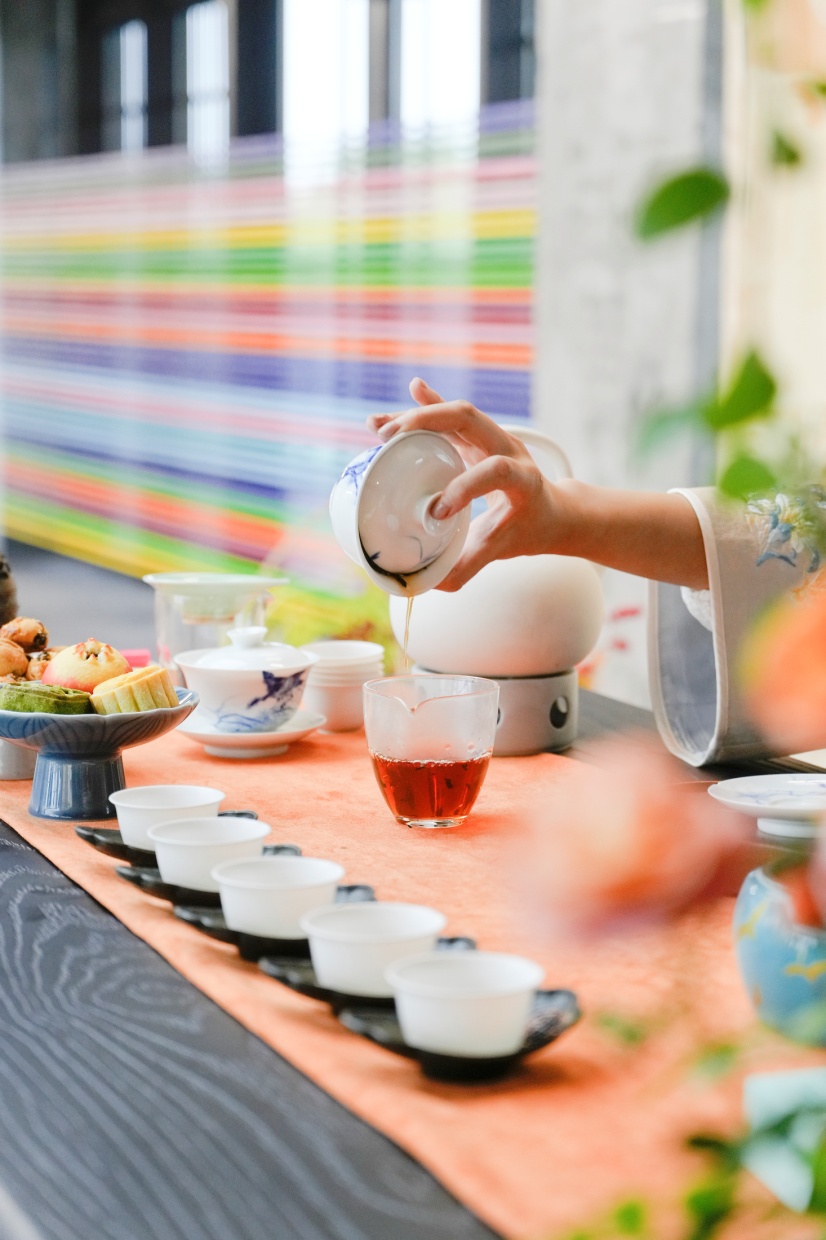 与之相映成趣的是“请陵食茶”——中式茶会雅集。该区域以市农投集团产品为核心,汇聚了多家精品茶馆主理人。宾客们不仅可以欣赏到行云流水的茶艺表演,品尝各式香茗与勾起回忆的传统茶点,还能参与手工陶器制作体验,并欣赏、选购精美的茶器,沉浸式体验中国茶文化的宁静与雅致。
