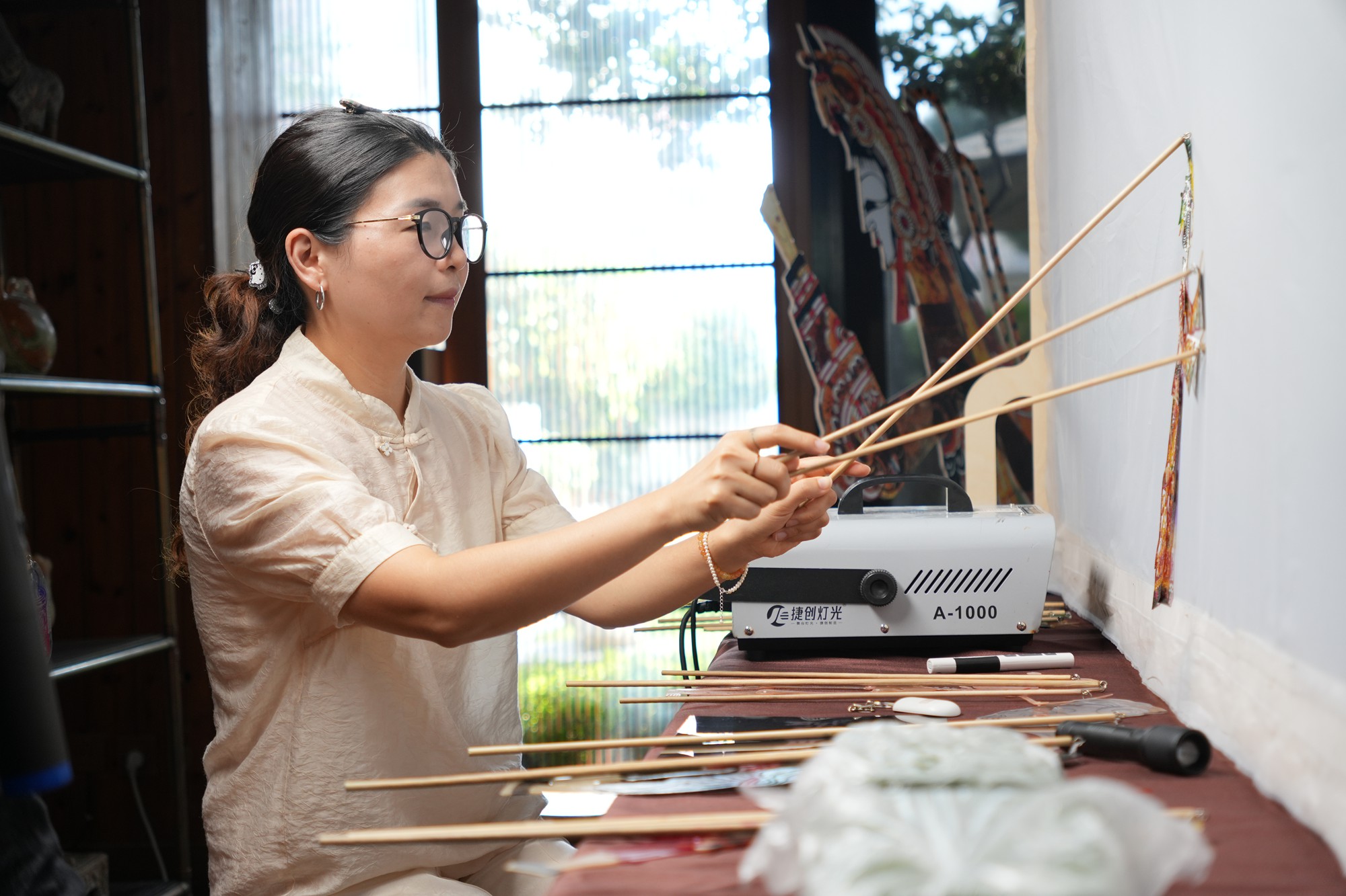 二亩半钟书房毗邻社区服务中心,除了举办室内文学讲座、读书分享会,借助场地优势,集合时节、主题日、节令,二亩半艺术空间与属地街道、社区共同将全民阅读真正延伸到居民的社区生活。三月的兰花展,碧山吟社的民间诗人以兰为题、借景抒情,将诗词艺术与自然之美巧妙融合,让传统文化在当下焕发新生,四月的“世界读书日”,聚焦老年群体阅读需求,促进代际知识共享,国庆期间二亩半剧场开演“蠡湖映趣:西游皮影戏”赢得满堂彩,爱心公益市集让各年龄段参与者找到乐趣。二亩半内还长期开展图书漂流项目,读者书友家中闲置书籍可在书房里进行置换,阅读的种子悄然播撒到更广阔的社区空间。