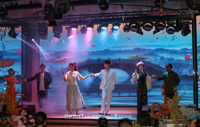夜色中,一场梦幻的水幕光影拉开了庆典晚宴序幕。随后,G.O团队献上一场原创的浪漫情淮秀,将民国时期秦淮河畔的爱情故事娓娓道来。这群多才多艺的快乐管家,白天在各自岗位工作,晚间则在舞台上大放异彩。