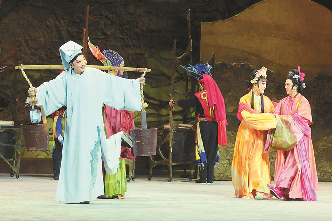 10月16日,2025紫金文化艺术节舞台艺术作品会演剧目之一——大型新编传统通剧《陈英卖水》在南通更俗剧院进行惠民演出。 徐培钦 摄 (视觉江苏网供图)