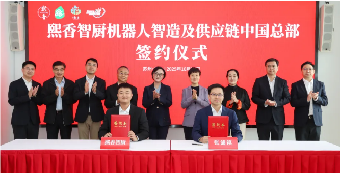 10月21日,熙香智厨机器人智造及供应链中国总部签约落户昆山。昆山市委书记陈丽艳、上海熙香智厨机器人有限公司创始人刘瑾共同见证签约。市领导单杰、宋崎参加。