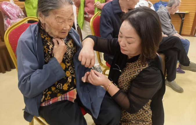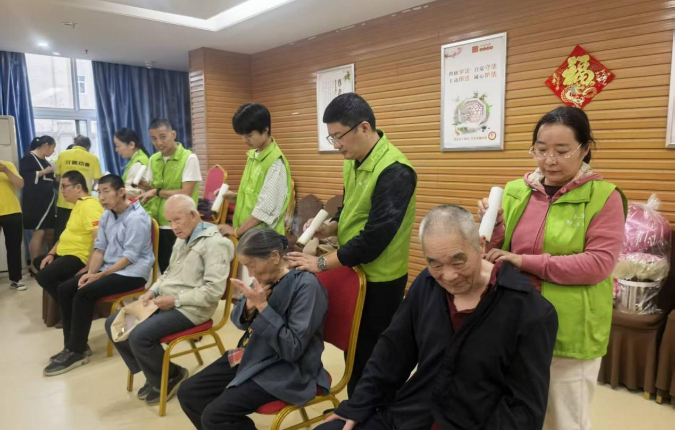 表演结束后,中汇人寿工作人员化身“爱心使者”,将重阳糕、牛奶、水果等慰问品逐一送到老人手中,并围坐倾听往事,叮嘱老人保重身体。苏氏艾灸疗法非遗传承人苏汉林团队还为养老中心的老人们提供了艾灸服务,艾香袅袅间,老人们连声称赞“舒服”。苏汉林说,艾灸是温暖的,志愿者的心更温暖。他希望以后能常来,用小小的艾条提升老人们的“精气神”。理发、剪指甲等贴心服务同步开展,细微之处尽显关爱。