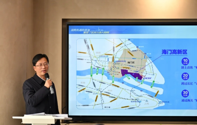 临江新区党工委书记朱健华全面推介了高新区的区位交通、产业生态、营商环境,全面打响“投资海门就是投资上海”的海门招商品牌。同时,就“产业+资本+平台”的发展模式作了重点介绍,展示了已建成的70万平方米产业载体、14支总规模约37亿元的产业基金,以及培育澳斯康、百奥赛图等龙头企业的成功经验,向现场嘉宾发出诚挚的“海门邀请”。
