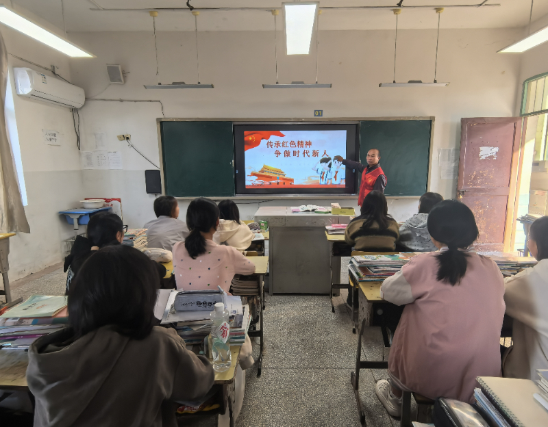 活动伊始,该校负责人对宣讲志愿者的到来表示热烈欢迎,并向同学们阐述了红色精神传承的重要意义,鼓励大家认真聆听、用心感悟,将红色基因融入成长之路。宣讲过程中,志愿者们以“小故事”诠释“大道理”,用通俗易懂的语言、鲜活生动的案例,带领师生重温红色历史。志愿者胡贵富深情讲述了黄继光的英勇事迹,从英雄少年时的家国情怀讲到投身革命后的无畏牺牲,一个个感人至深的细节让在场师生热泪盈眶,同时结合自身经历,分享了新时代基层工作者如何传承红色精神,在乡村振兴、社区服务中践行初心使命的故事,让同学们明白传承红色精神体现在日常的每一次坚持与担当之中。