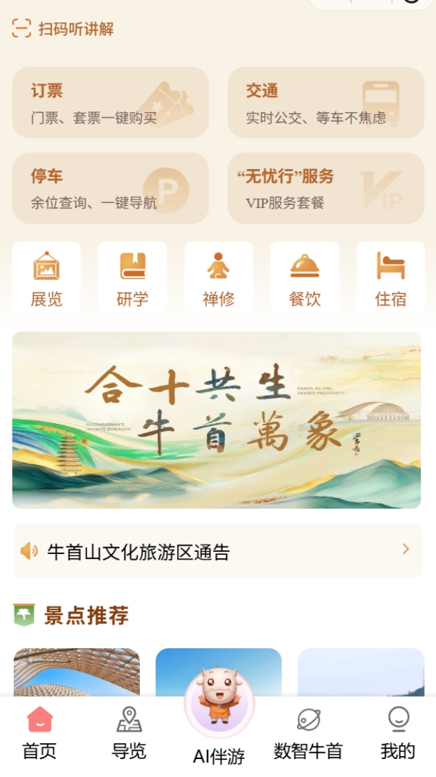 坚持文化、旅游、科技深度融合,牛首山建成智慧旅游系统,实现景区内部智能运营管控和业务无缝协同,获评国家文旅部智慧旅游典型案例、智慧旅游创新项目”;打造了“数智牛首”数字化平台,含元宇宙、AR 体验等场景,文化特色鲜明,用户超200万、使用超1600万次,入选“2024中央级文化和旅游领域科技创新应用教学案例”、获“2023省智慧文旅示范项目等荣誉;“牛小禅AI伴游” 则以全流程服务为核心,整合导览、讲解等功能,提升游玩舒适度与效率,架起游客与景区的智能服务桥,入选“2025年江苏省文旅科技融合创新项目名单”。