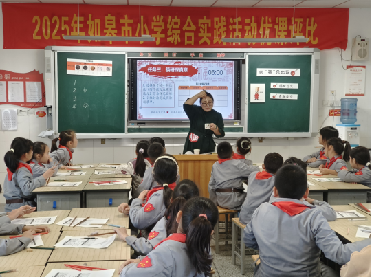 10月28日,如皋市小学综合实践活动优课评比在南通如皋红军小学顺利举行。本次活动紧扣“实践育人 融合创新”的主题,呈现了一系列富有创见的精彩课例,充分彰显了综合实践课程在跨学科融合方面的独特魅力。课堂中注重引导学生开展自主探究,强化实践体验,生动诠释了综合实践活动课程的育人价值与时代内涵。