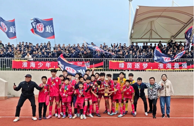 阳光洒在淮海初中的绿茵场上,奖杯的光芒与少年们的笑容交相辉映。这场夺冠之战,不仅见证了一场比赛的胜利,更诠释了体育教育的真谛——在这里,足球不只是一项运动,更是少年们成长路上最耀眼的勋章。(陈璇 李佳)
