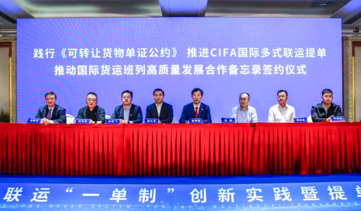 为了推动提单落地工作走深走实,本次提单上线发布会上签署了“践行《可转让货物单证公约》 推进CIFA国际多式联运提单,推动国际货运班列高质量发展合作备忘录”。
